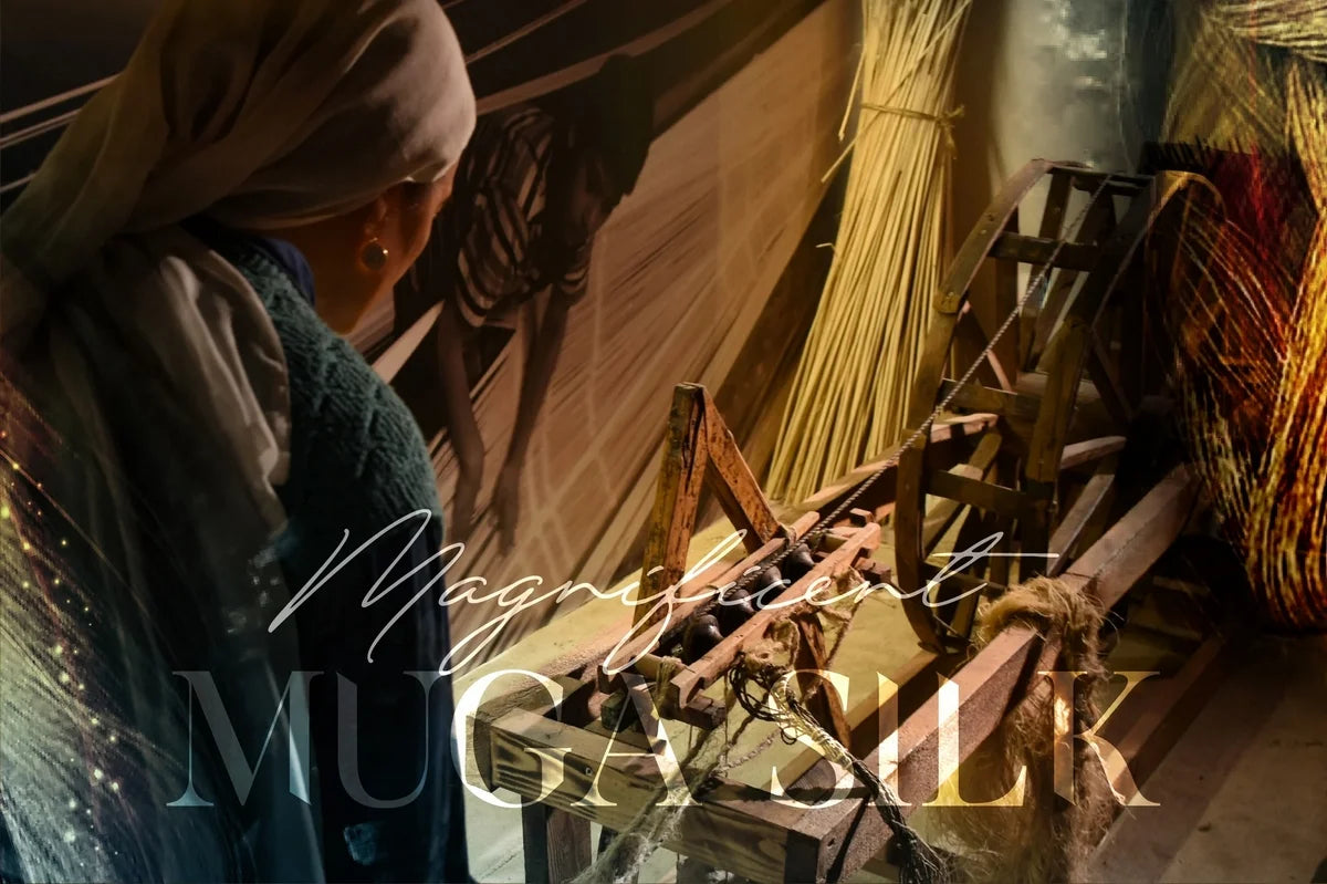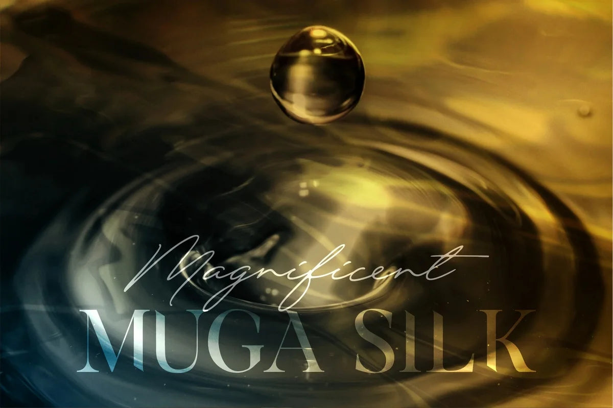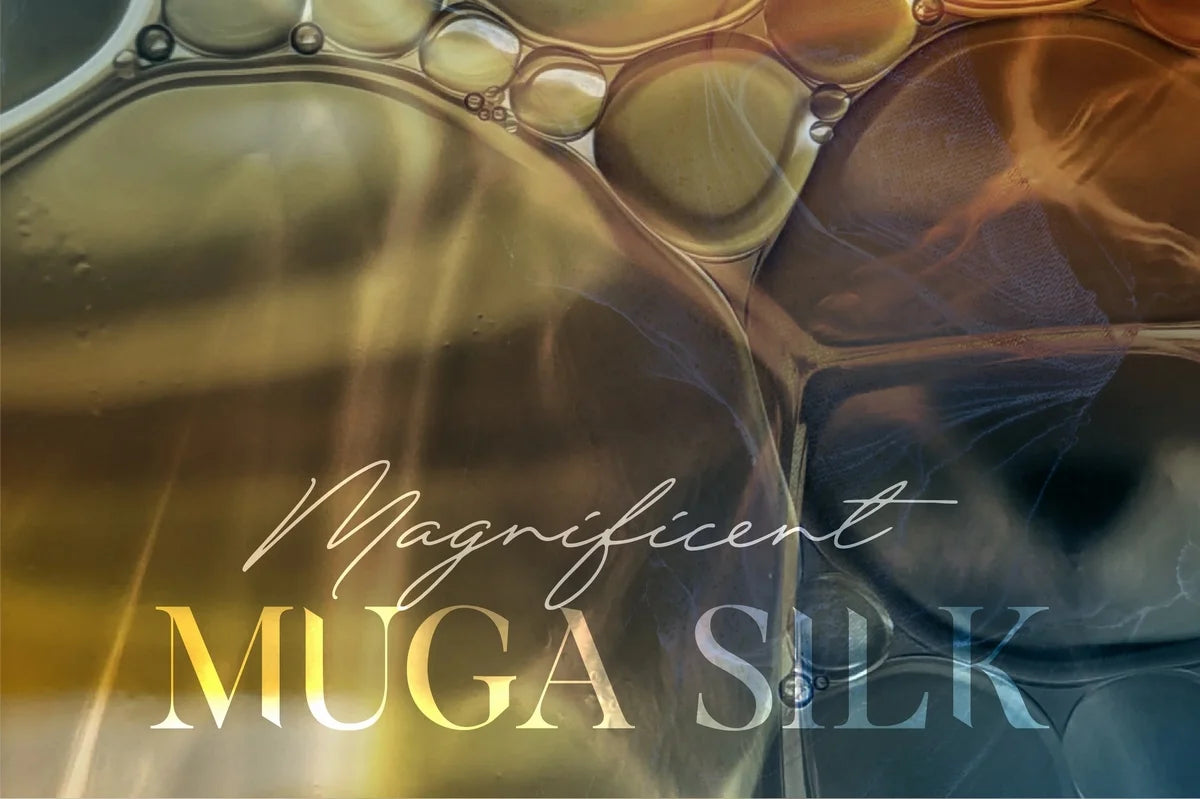 Originating from Northeast India, particularly Assam, Golden Muga Silk is renowned for its exceptional durability and cultural significance in weaving silk sarees. The fabric is so robust and long-lasting that it is said to outlive its wearer.